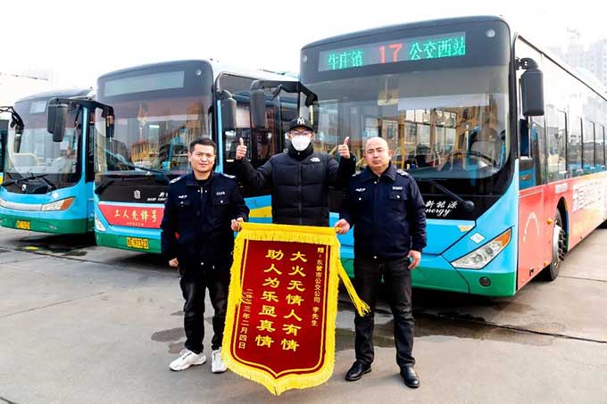 2023年2月7日下午,市民李先生來到市公交公司汽車三隊,將一面剛剛定制的“大火無情人有情,助人為樂顯真情”的錦旗送到兩位駕駛員手中,向他們英勇救火的善行義舉表示感謝。
