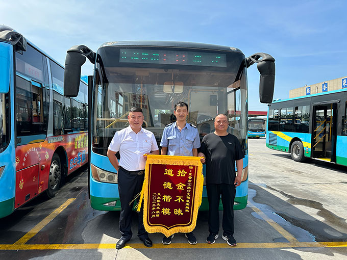 8月1日,陳先生將一面寫有“拾金不昧,道德楷模”的錦旗送到市公交集團(tuán)汽車六隊,感謝131路駕駛員周鵬鵬師傅拾金不昧。 7月30日,陳先生不慎將自己的手機(jī)遺漏在131路上,駕駛員周鵬鵬發(fā)現(xiàn)后第一時間把手機(jī)帶回車隊,此時手機(jī)失主家屬打來電話。經(jīng)溝通,家屬得知是公交駕駛員撿到,連聲道謝并詢問了車隊地址,匆忙來尋找。經(jīng)車隊運(yùn)行隊長徐小樹核實后,將丟失的手機(jī)歸還給失主家屬。陳先生為表謝意,專程送來錦旗。