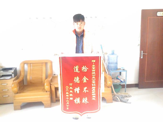 12月15日,家住南一路桐鳳小區(qū)的付玉先生拿著一面寫有“拾金不昧、道德楷模”的錦旗來到市公交公司汽車四隊(duì),感謝車隊(duì)駕駛員吳新桐師傅拾金不昧的高尚品德。