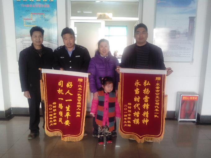 1月27日上午,一位楊先生攜全家激動(dòng)的來(lái)到市公交公司汽車一隊(duì),雙手捧著兩面錦旗向駕駛員隋崗和車隊(duì)表示感謝。