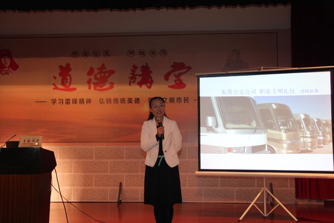 2013年9月27日晚,市公交公司第九場道德講堂活動(dòng)在公司南會(huì)議室舉行,此次活動(dòng)按照自我反省、唱歌曲、學(xué)模范、誦經(jīng)典、發(fā)善心、送吉祥、做點(diǎn)評七個(gè)規(guī)定環(huán)節(jié)進(jìn)行。公司特別邀請上海富禮德禮儀服務(wù)有限公司高級禮儀講師趙菊為大家做“職業(yè)文明禮儀”的講座。趙老師的演講,深入淺出,結(jié)合實(shí)際,讓我們受益匪淺。在今后的工作生活中我們必定更加“懂禮、知禮、用禮、善禮”,為廣大市民提供更加優(yōu)質(zhì)的服務(wù)。活動(dòng)結(jié)束時(shí)每個(gè)人還領(lǐng)到了印有“二十四孝”的公交道德講堂折扇。