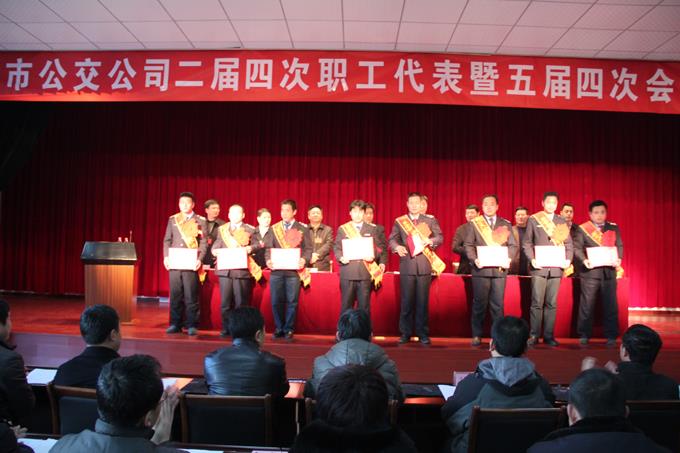大會由市公交公司副經理李學忠同志主持,趙龍副經理宣讀了2013年公司先進集體、先進個人及優秀黨組織的表彰決定,并進行了頒獎儀式。會議審議通過了公司經理朱新民同志做的《2013年公司工作報告》、工會主席崔磊做的《2013年公司工會工作報告》,會議還審議通過了《公司2013年財務工作報告》、《公司行車安全制度修改草案》和《公司稽查管理規定修改草案》等事項。