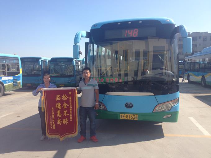 9月3日,家住東營區史口鎮寨王村的王國梁先生乘坐148路車外出,下車后發現錢包遺忘在公交車上。汽車四隊駕駛員郭嘉撿到了王國梁先生遺失的錢包,發現內有身份證、銀行卡、現金一萬二千余元,忙將其上交車隊暫時保管,車隊及時聯系失主并將失物完璧歸趙。王國梁接過失而復得的錢包顯得意外而又驚喜,執意要給公交車駕駛員郭嘉師傅酬金3000元表示感謝,被她婉言謝絕了。翌日,王國梁拿著一面寫有“拾金不昧、品德高尚”的錦旗來到車隊,感謝郭嘉師傅拾金不昧的高尚品德。