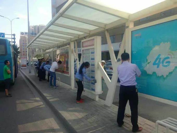公交候車亭上面粘有透明膠、不干膠、漿糊等,有的候車亭燈箱還被糊上了好幾層廣告,黨員們手拿小鏟子、小刷子、清潔球、水桶等清除工具,三人一組、兩人一伙,有的噴水,有的用鏟刀用力清除,一個個干的熱火朝天。經過三個多小時的清理,西四路兩側公交候車亭衛生死角和野廣告被清理干凈,市民的候車環境衛生得到很大改觀。在候車亭等車的市民們高興地說:“站牌上到處都是小廣告,各種顏色的,像牛皮癬一樣討厭,這些黨員真能干,小廣告沒有了,在候車亭等車心情也舒暢了?!?BR> 通過本次活動,黨員們用自己的實際行動為清潔公交候車亭、愛護公共環境作出了努力,使公交候車亭外觀得到了凈化,營造了一個整潔美觀、文明和諧的候車環境,增強了黨組織的凝聚力和戰斗力,從而使黨員們更好地踐行黨員先鋒模范作用,得到了市民們的一致好評。
