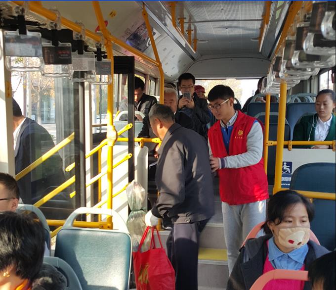 為進(jìn)一步營造文明城市復(fù)核迎測(cè)的濃厚氛圍,弘揚(yáng)“奉獻(xiàn)、友愛、互助、進(jìn)步”的志愿服務(wù)精神,踐行常態(tài)化志愿服務(wù)機(jī)制,市公交公司于10月31日上午聯(lián)合職業(yè)學(xué)院開展了志愿服務(wù)活動(dòng)。志愿服務(wù)活動(dòng)主要是引導(dǎo)乘客有序乘車,幫助老弱病殘?jiān)械忍厥獬丝蛢?yōu)先乘車及主動(dòng)為老弱病殘?jiān)凶屪虺珜?dǎo)乘客保持車廂衛(wèi)生以及引導(dǎo)公交車輛規(guī)范停靠等等。