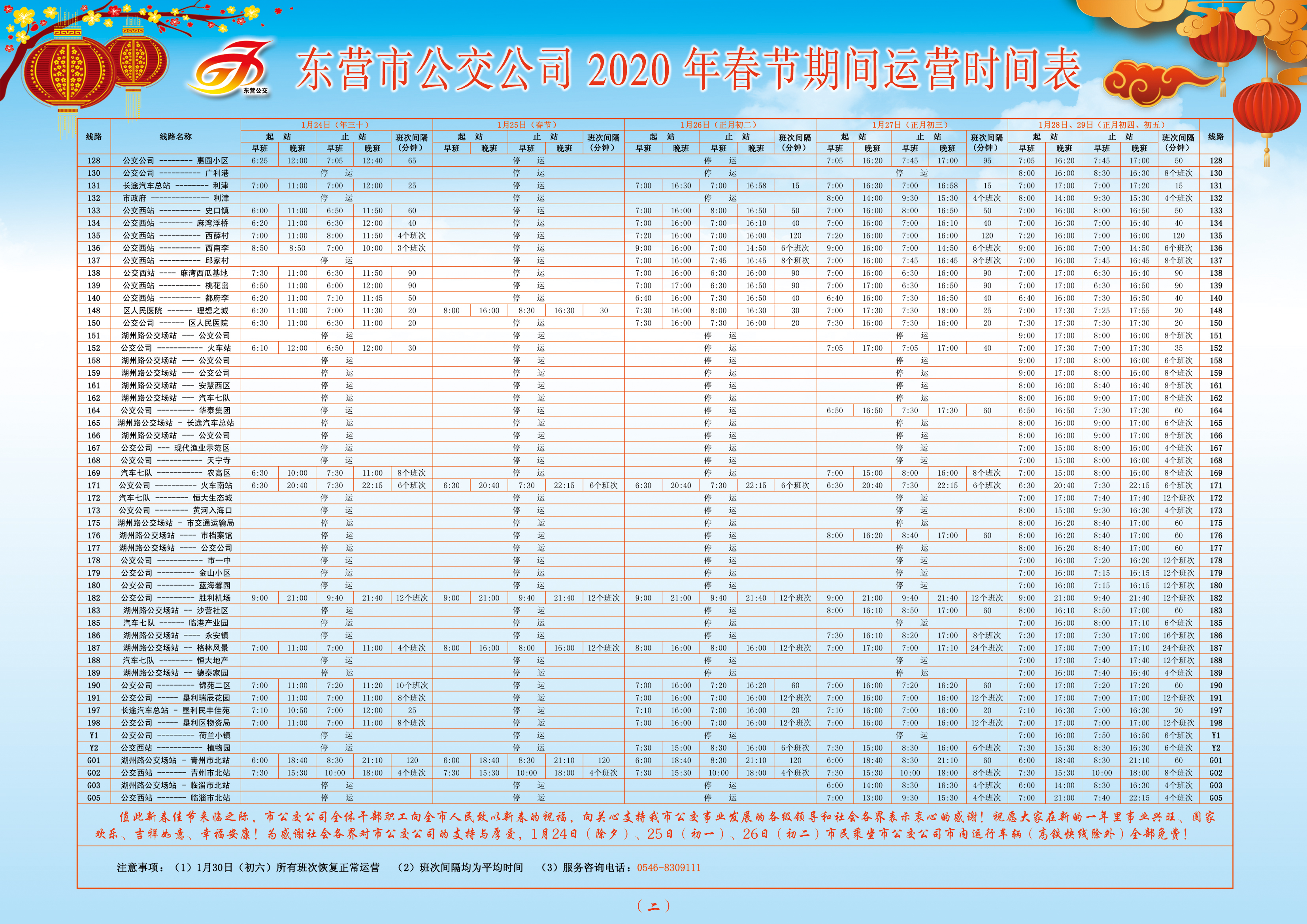 2020年市公交公司春節公交運行時刻表新鮮出爐!