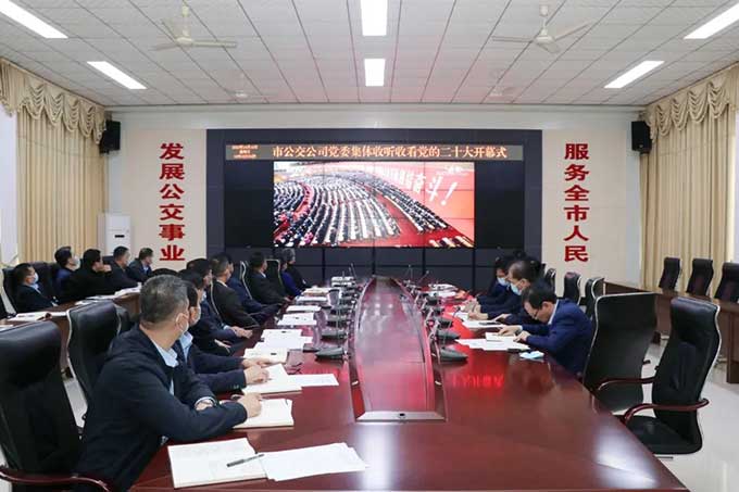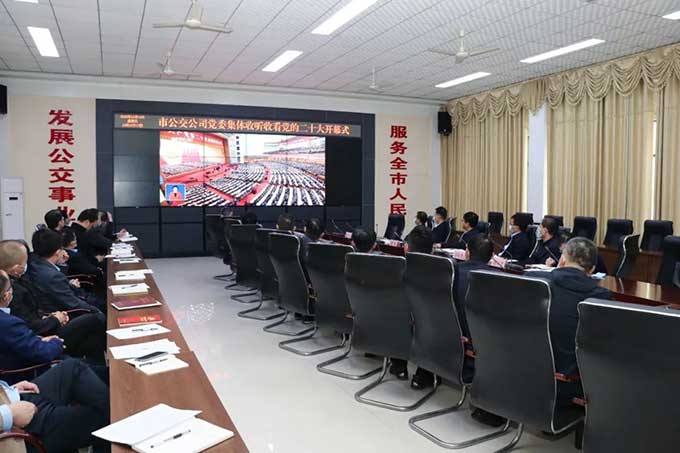 10月16日上午10時,市公交公司黨委組織干部職工準時收聽收看黨的二十大開幕式直播盛況。