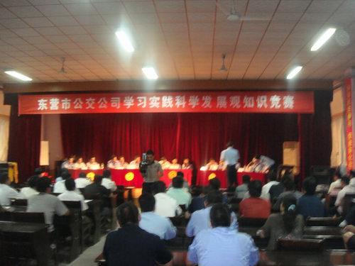 為檢閱和鞏固公司各黨支部深入學習實踐科學發展觀活動成果,進一步加強黨的基層組織建設和黨員隊伍建設,迎接建黨88周年,我公司于2009年6月30日晚19:30,在公司一樓大會議室,舉辦了“東營市公交公司學習實踐科學發展觀知識競賽”。此次競賽共有五支代表隊參加,經過緊張的必答和搶答比賽,最后汽車三隊支部、汽車一隊支部、公司后勤支部分別獲得第一、第二、第三名。