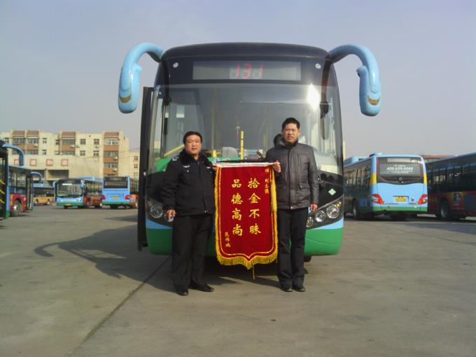 2月10日上午,油建三公司的范作鵬先生拿著一面寫有“拾金不昧、品德高尚”的錦旗來到市公交公司汽車三隊,感謝131路駕駛員劉志強同志拾金不昧的高尚品德,感謝公交公司培養出這么優秀的公交駕駛員。