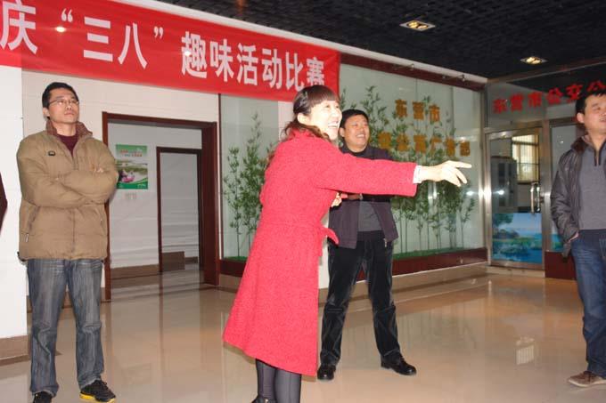 為慶祝“三八”國際勞動婦女節(jié),豐富和活躍職工文化生活,3月5日下午,市公交公司廣告部舉行了慶“三八”趣味活動比賽。比賽設有搶凳子、夾玻璃球、吹氣球、投擲飛鏢四個項目。整個活動現(xiàn)場氣氛熱烈,快樂而有趣,所有人員興致勃勃參與到各個趣味游戲當中。大家各施其技,力爭取勝,過關的喜悅,獲勝的歡樂一次次把比賽推向高潮。