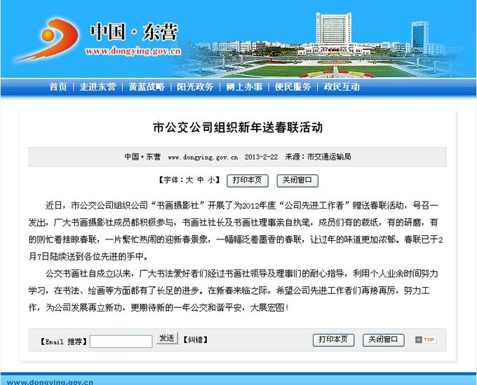 2013年2月6日東營市政府網站報道