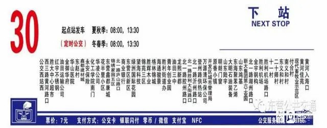 30路公交車路線:公交西站西 至 黃河入海口,發車時間:08:00、13:30(夏秋季)08:00、13:30(冬春季)。